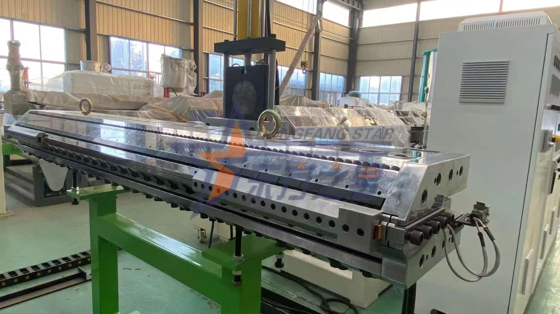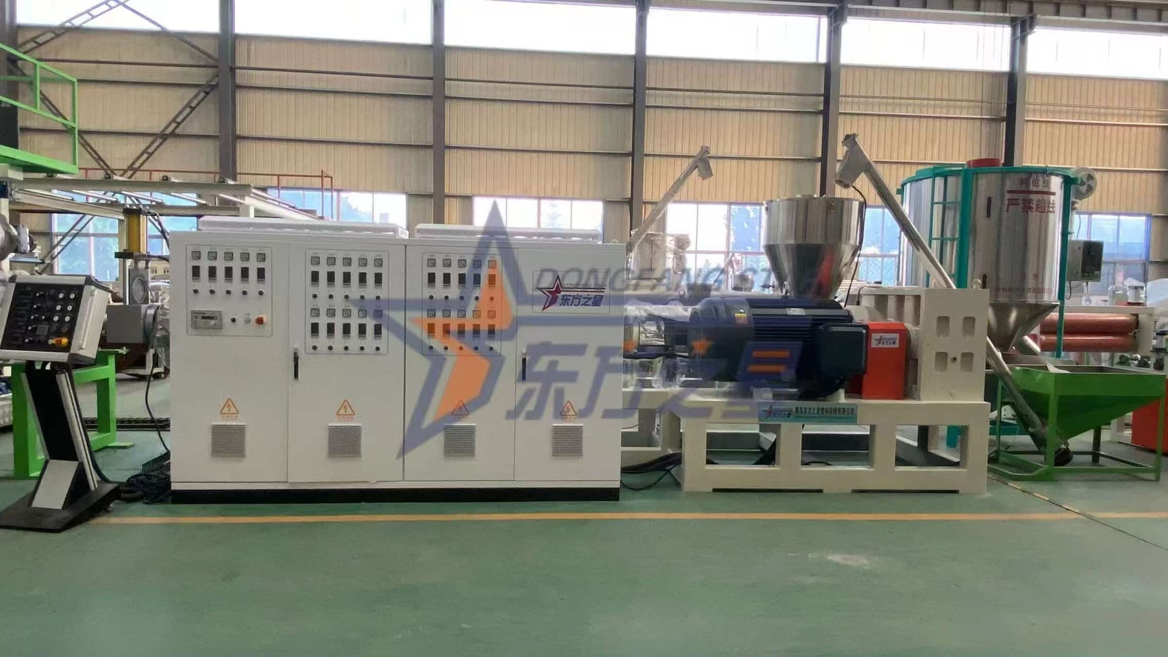 Vår EASTSTAR SJ150-HIPS/ABS 2000 mm ekstruderingslinje av plastplater er konstruert for høyvolumproduksjon av ark av førsteklasses kvalitet som brukes i apparathus, skilting og industriell emballasje. Med robust ytelse på 400-600 kg/t og utstyrt med SIEMENS & ABB automatisering, sikrer den stabil ytelse og overlegen overflatefinish via kalandreringsruller med speilfinish. Støttet av våre interne FoU- og produksjonsfasiliteter, leverer vi pålitelige, spesialkonfigurerte løsninger. Etter å ha levert nøkkelferdige linjer over hele Sørøst-Asia og Midtøsten, opprettholder vi strømlinjeformet produksjon for rettidig global levering. Denne ekstruderen representerer en optimal balanse mellom produktivitet, presisjon og holdbarhet for å utvide dine arkproduksjonsevner.