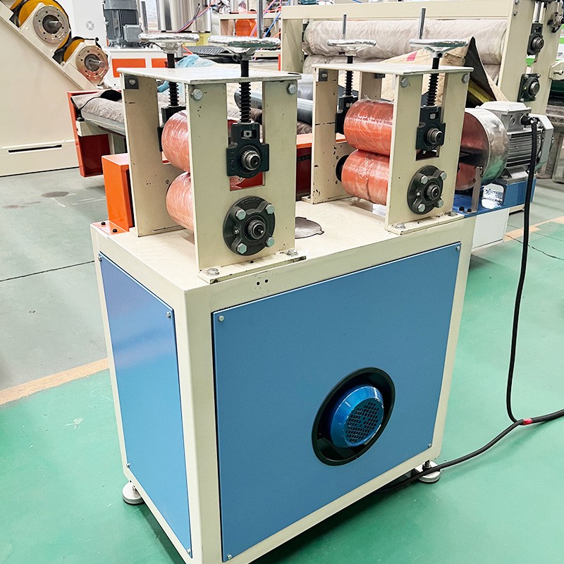 PE Bag Edge Strip Extrusion Machine inkluderer enkeltskruekompressor - maskinhodeform - vakuumformingslager - trekktraktor - vikling
