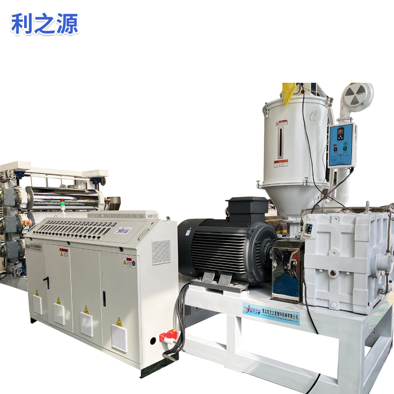 Myk PVC anti-skli plate ekstruderutstyr: Utstyret består hovedsakelig av en enkeltskrue ekstruder, en tre-ruller kalender, en 6 meter kjøling
