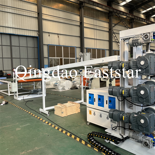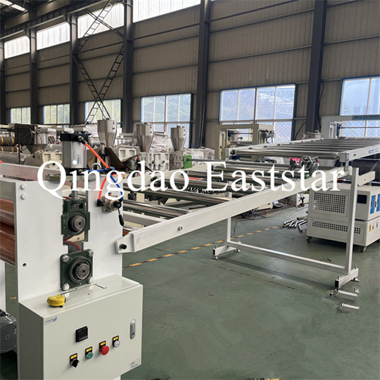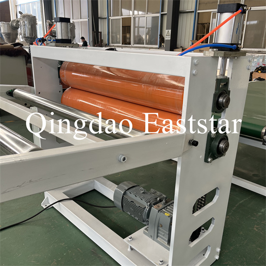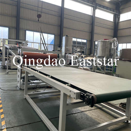 brakett, en gummirulletrekkmaskin, en klippemaskin og en transportbåndanordning. PVC anti-skli plateekstruder Utstyr, produktbredde